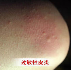 1. 过敏性皮炎:一旦产生皮疹,刚开始表现为针头至粟米粒大小,密集的红斑、丘疹和丘疱疹,常对称分布,有瘙痒或者有灼热感。伴有少许柔软而细薄鳞屑,皮肤皱纹清楚,局部温度稍低。因反复搔抓可出现湿疹样皮疹,以丘疹为主,水疱、糜烂或渗出较少。