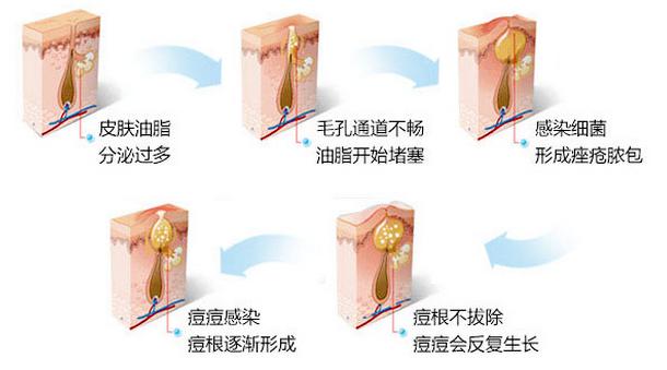 1、青春痘:对于所谓的青春期造成的一系列的毛孔堵塞情况,如果不及时治疗,会引发更多痤疮,恶化至脸部甚至到前胸后背,痤疮反复发作,增加治疗难度,治疗恢复慢。