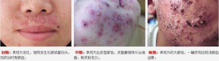 3、囊肿性青春痘:表现以大小不等的皮脂腺囊肿内含有带血的粘稠脓液,破溃后可形成窦道及瘢痕称囊肿性青春痘。