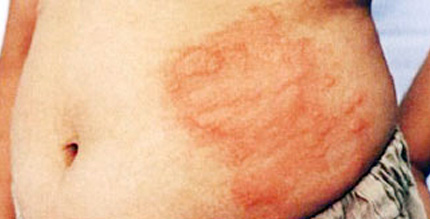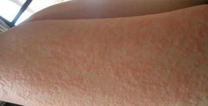因与鱼虾蟹等食物过敏或者病毒感染、蚊虫叮咬或肠道疾病等引起。大多数患者有剧痒的风疹块或患处灼热感。严重患者有头疼、发热甚至昏厥或休克现象。
