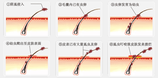 由于早期阴虱病以会阴部瘙痒为主,时间长可见丘疹、红斑,早期一般人不引起重视甚至不治疗。实在阴虱的繁殖能力很强,天天可以繁殖40-50个,长时间不治疗可能导致虱疮,继发感染其他系统疾病,由于阴虱可以自由活动,长时间不能消除可以传播到身体其他有毛发部位,比如头发、腋窝等处,增加治疗难度,可以导致夫妻双方、朋友及家人等感染,引起群体发病。假如阴虱病长时间不治疗科导致毛囊炎、脓疱和湿疹,令患者无法睡眠、无法正常学习、工作!所有发现以后要正确对待、积极治疗。