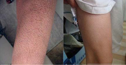 “今天刚好治疗10天,比来之前好多了。”2013年5月24日,在军大诊疗室,魏先生谈起了30年来鱼鳞病带给他的难堪,但他表情很轻松,因为他正在接受科学专业的治疗,效果很好,说话间流露出一种溢于言表的高兴。