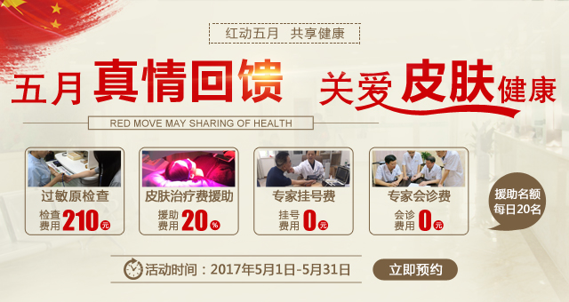 五一即将来到,好不容易放假的你,难道还要在皮肤疾病的煎熬?为了方便广大市民五一假期就诊,军大医院在总结完善了以往长假接诊经验的基础上,做了妥善的安排和合理的配置,确保五一期间,医院各科室工作正常开展。举办以“五月真情回馈关爱皮肤健康”为主题的医疗援助活动。