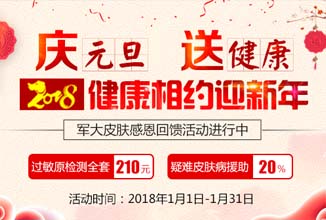 同时,为解除皮肤病患者春节前夕顽疾困扰,我院特举办“庆元旦,送健康”开年感恩回馈活。届时邀请省内皮肤病专家来院会诊,让本市以及归家的老乡以健康的姿态迎接新的一年,医院特别开通“元旦网络挂号绿色通道”,您可点击在线咨询或者点击下方电话按钮提前预约。