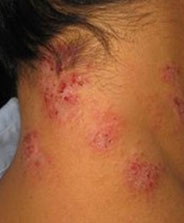 出现大小不等的小丘疹,抓破后可出血、结痂、脱屑,导致皮肤毛囊破坏,引起毛发脱落、断裂。